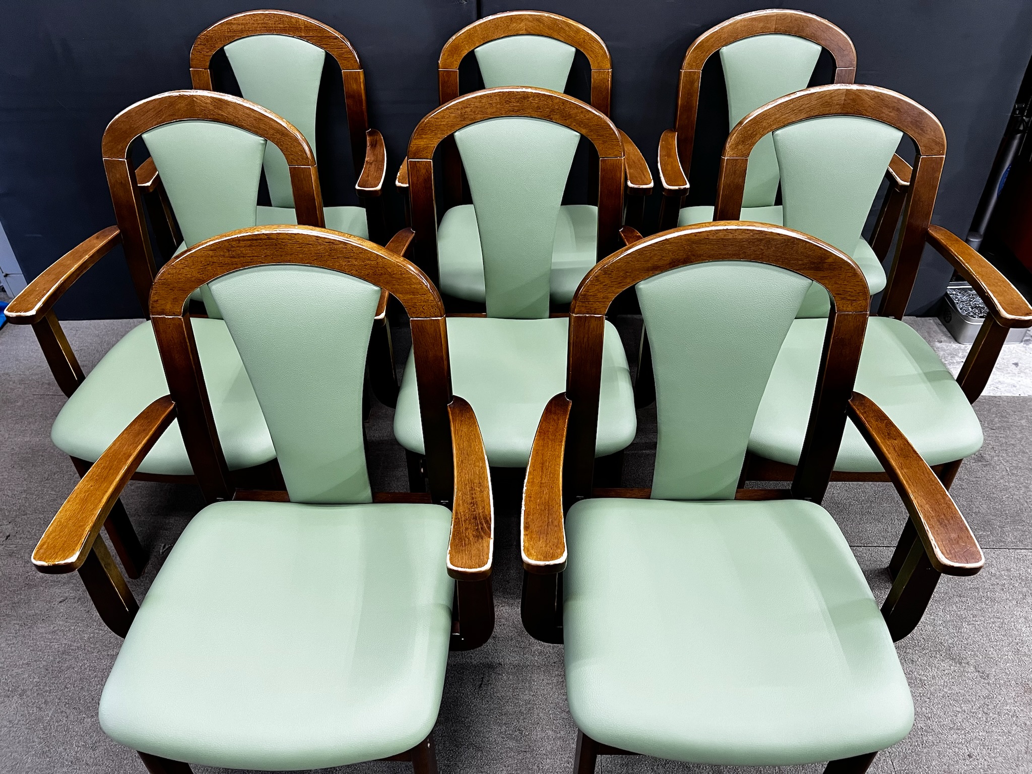 高齢者福祉施設様のダイニングチェアの張替えを承りました。 今回は張替えを機にカラーチェンジされました。 とっても明るいカラーになり、雰囲気も変わりますね♪ カラーチェンジも合皮→布も布→合...