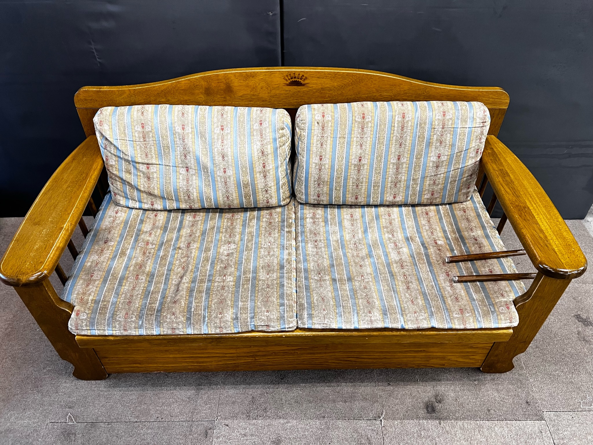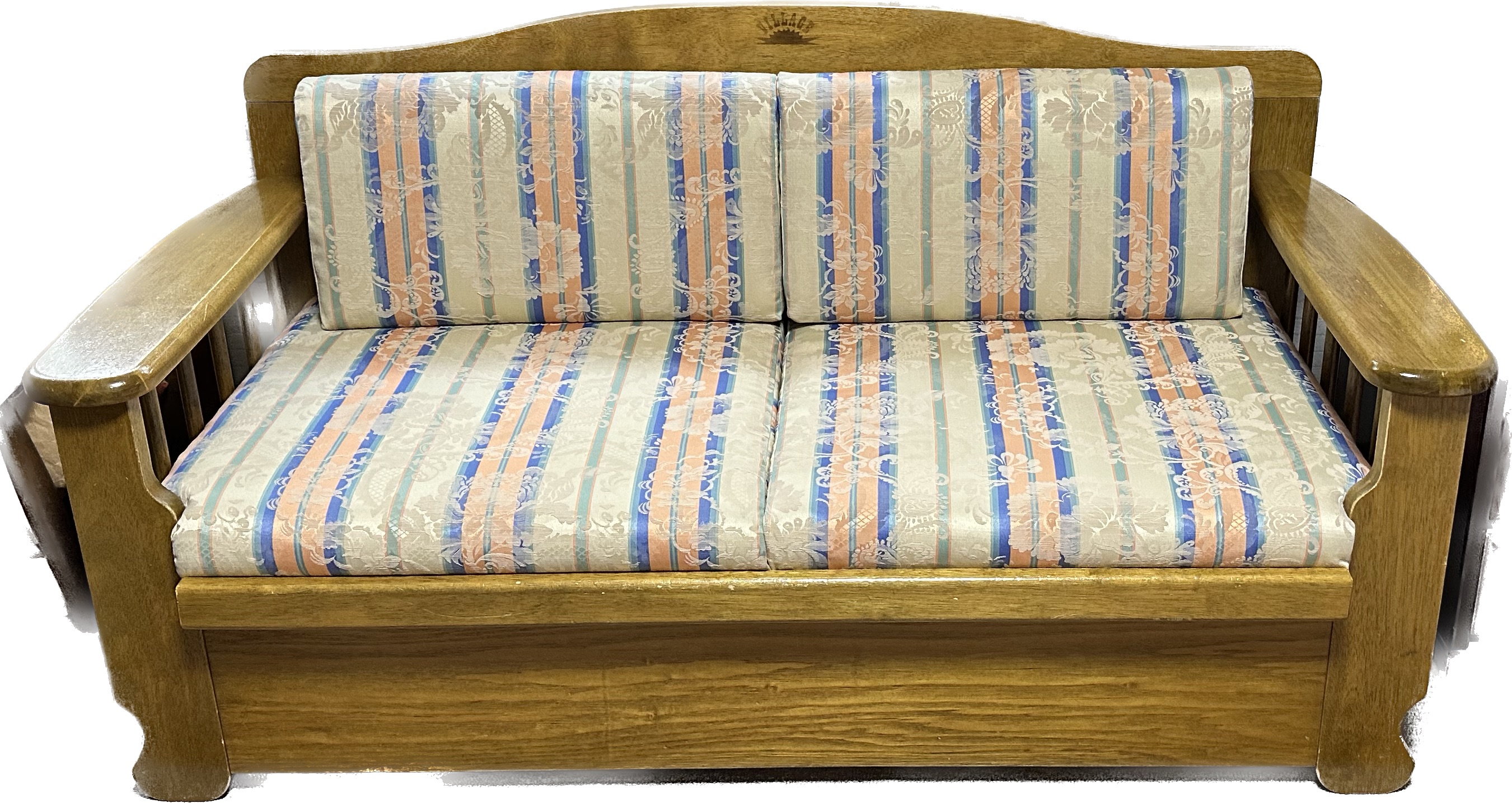 二人掛けファブリックソファの張替えと修理を行いました。 土台の木枠のダボの補修。一部外れがあり、全部のダボを接着しなおし圧着しました。 また、座面・背部分のクッション材も全交換しました。