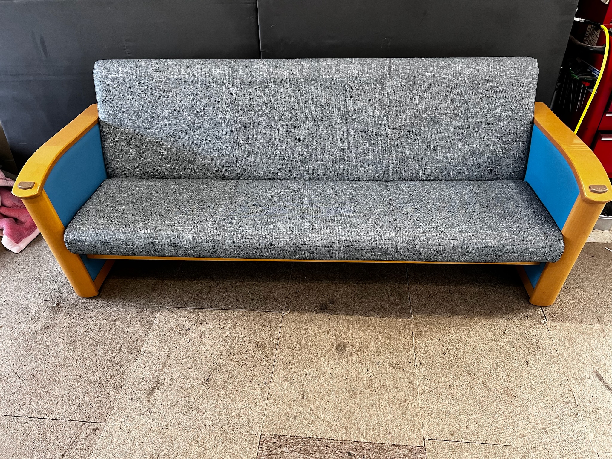 病院の待合椅子の張替えを行いました。破れのあった背と座のみの張替えになります。 張り替えは、劣化状況によりますが、ご予算に合わせて部分張替えも可能です。 お気軽にご相談ください。