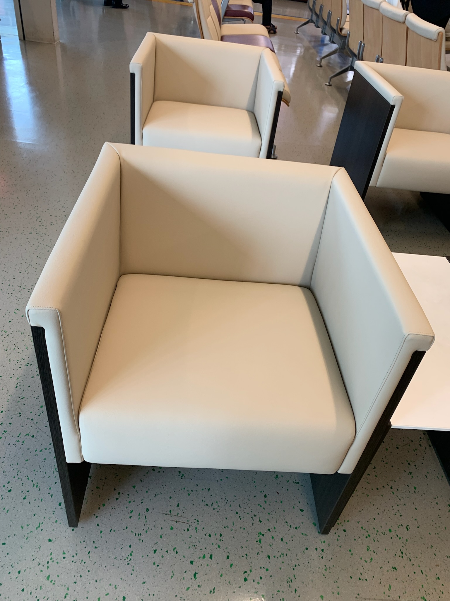 北九州空港様の待合ロビーの椅子の張替えを行いました。今回は汚れの目立つベージュのみです。 多くのお客様にご利用されている椅子は破れや汚れが目立ってまいります。 張り替え後にお手入れしやすいコ...