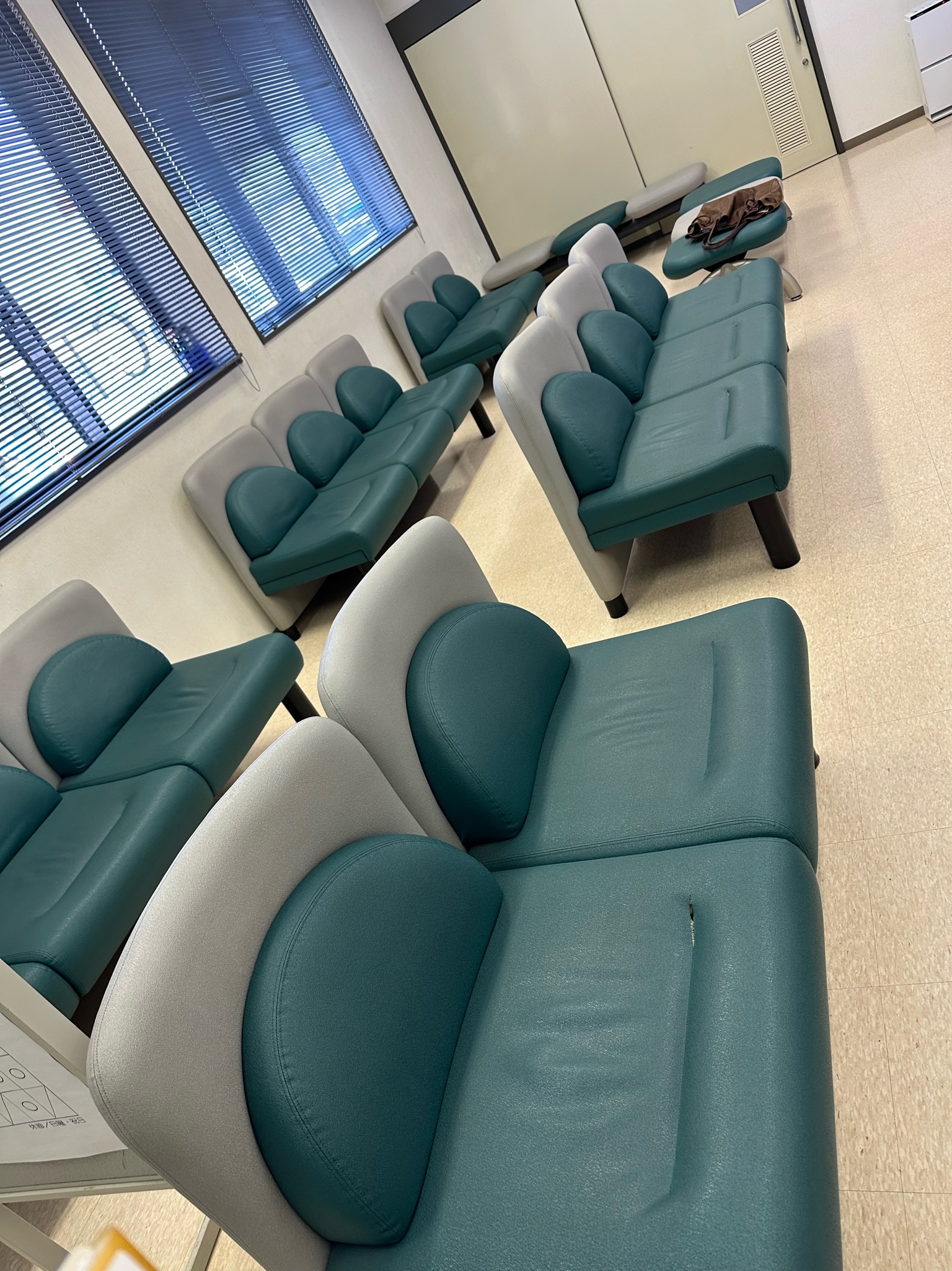 病院内の待合椅子の張替えのご依頼をいただきました。 三人掛けの長椅子は、多くの方が使用するので一部破れてしまったり、 劣化で裂けてしまったりがありますね>< 全部を買いそろえるのも大変...