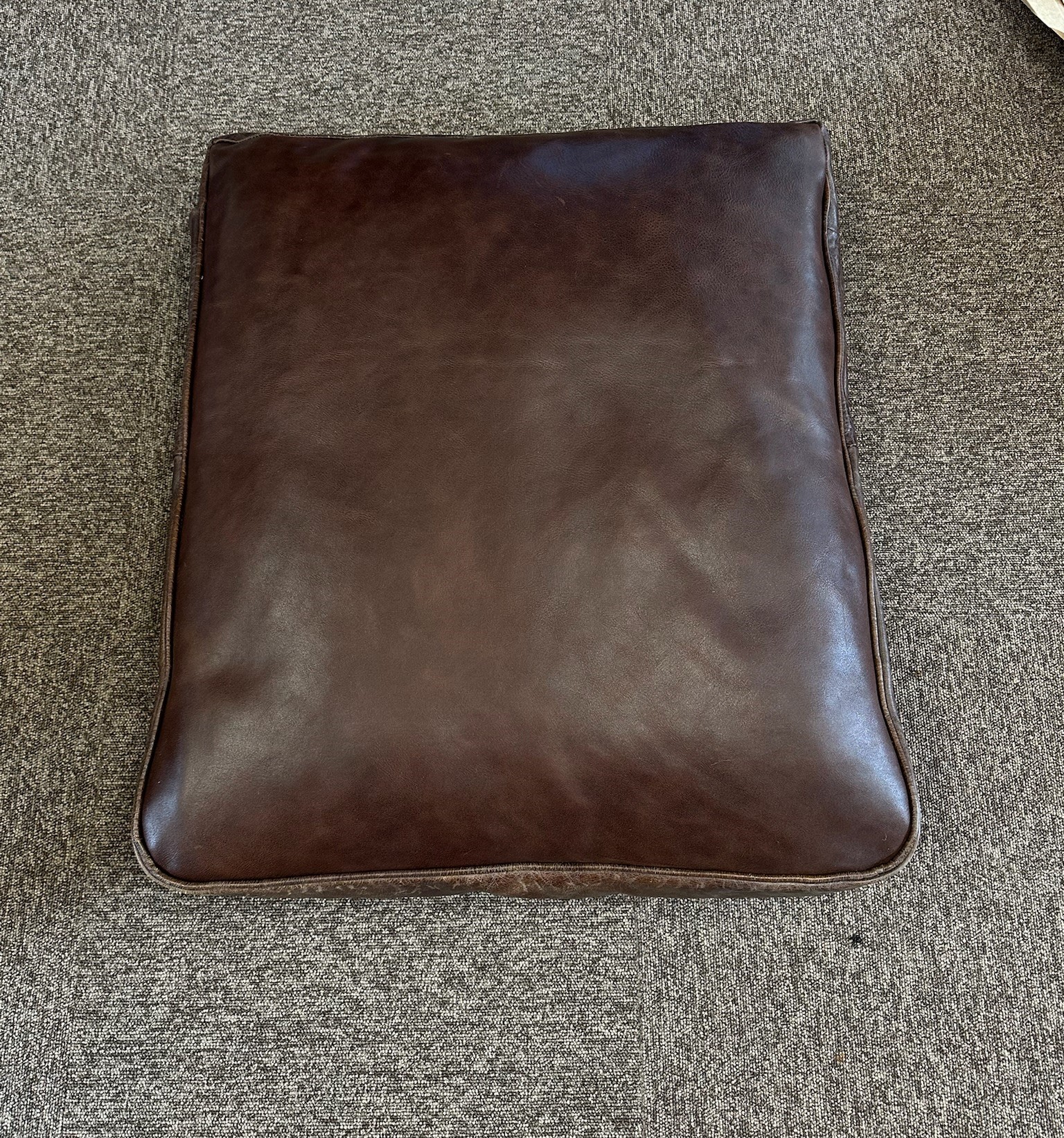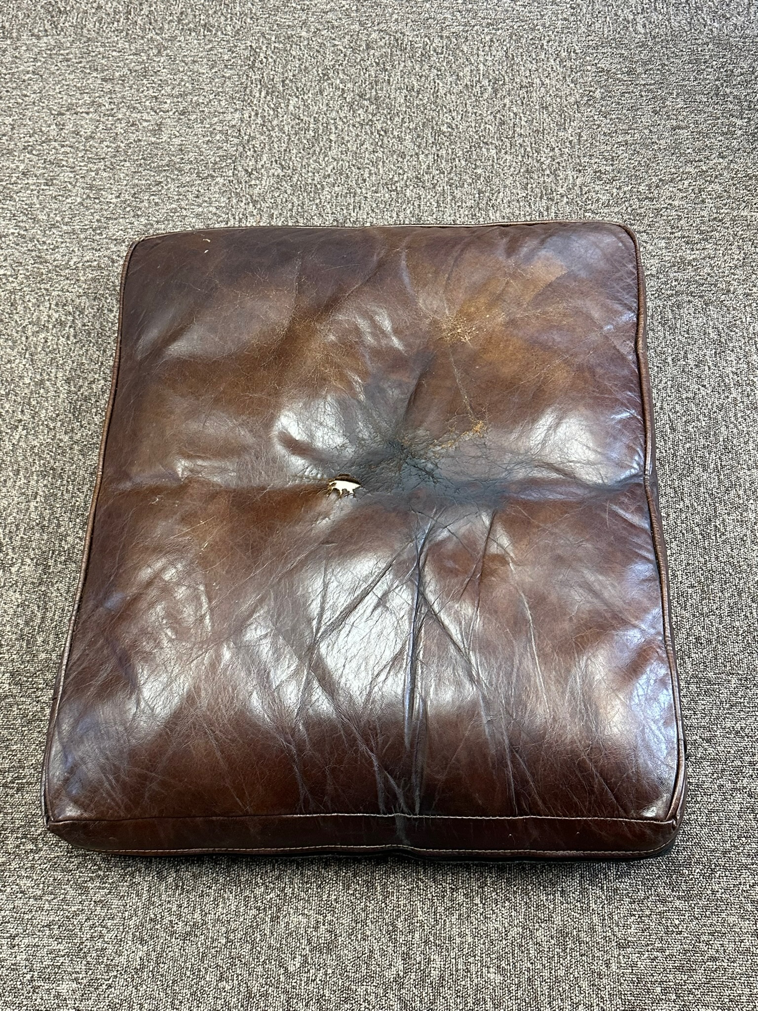オットマンの染め直しのご依頼をいただきました。色を変更して別の部屋のソファと一緒に使用したいとのことでしたのでカラーチェンジを行っています。座面部分は本革でしたが、下部は合皮仕様だったため、染め...