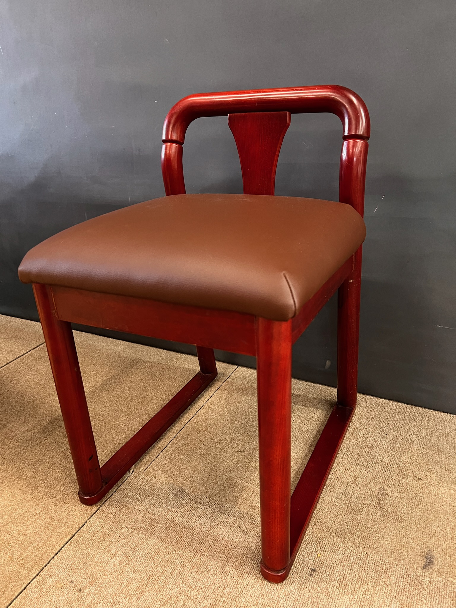 鏡台椅子の張替えを行いました。ファブリック(布)から合皮にいたしました。ファブリックから合皮へ変更される方は多いです。合皮のメリットは水拭きできるので、ふき取りに適しています。また、布に比べ空気...