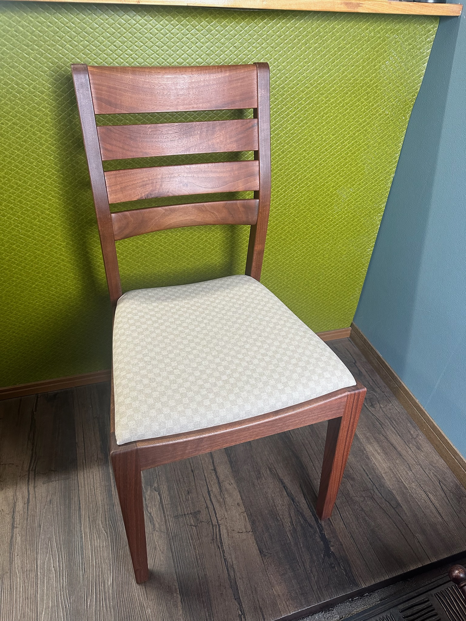 ダイニングチェアの張り替え依頼を頂きました。生地は布製でシミ汚れがある状況でした。ダイニングで使用する椅子は、汚れやすいことも多くご相談が多いです。お気に入りの柄や生地でない場合は、お手入れしや...