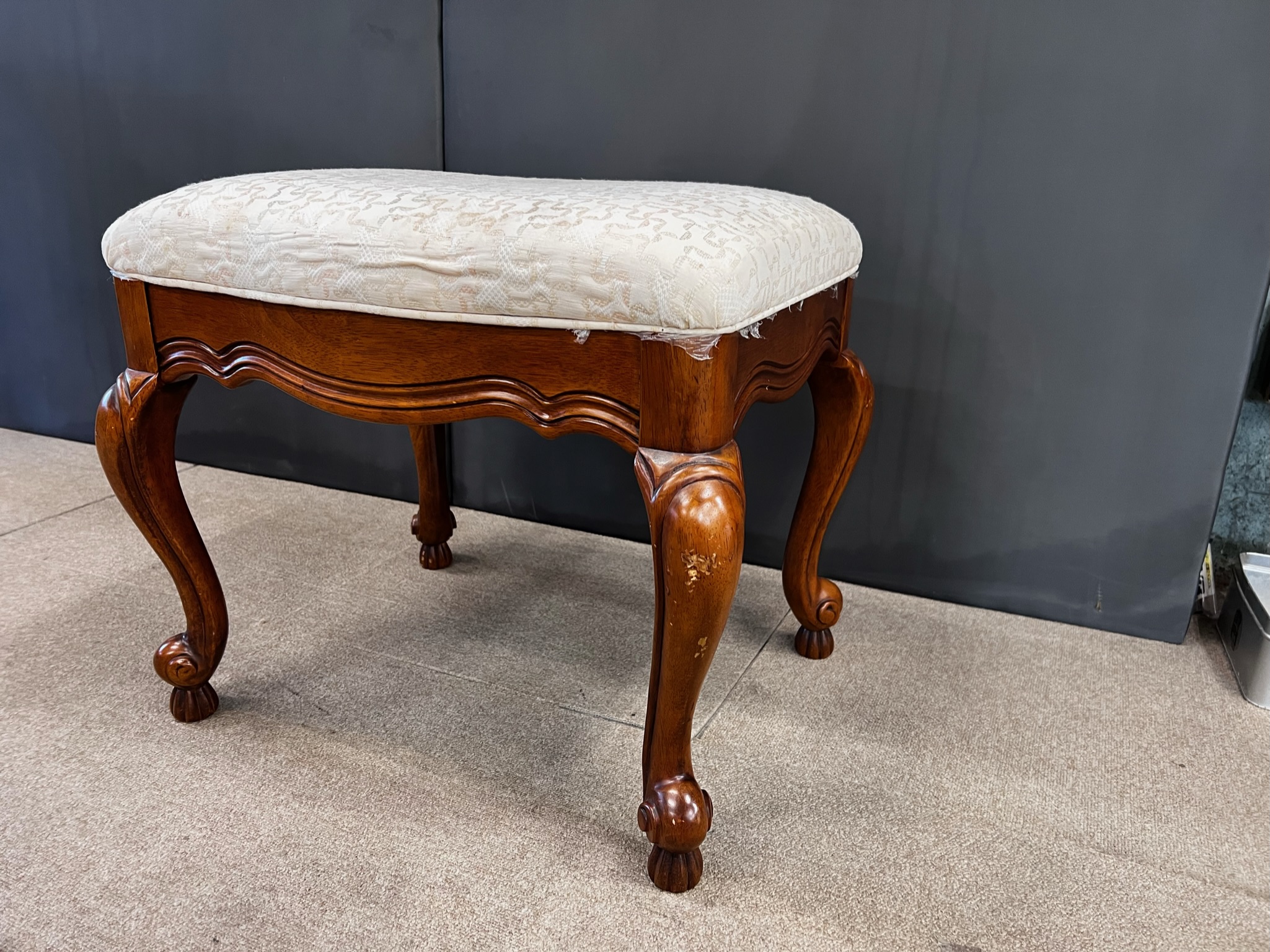 鏡台用の椅子の張替えをご依頼いただきました♪ 長年愛用してきた椅子は、クッション材が劣化してしまったり、 破れや汚れが気になりますね>< 買い替えるのも・・・と迷っているときは 張替...