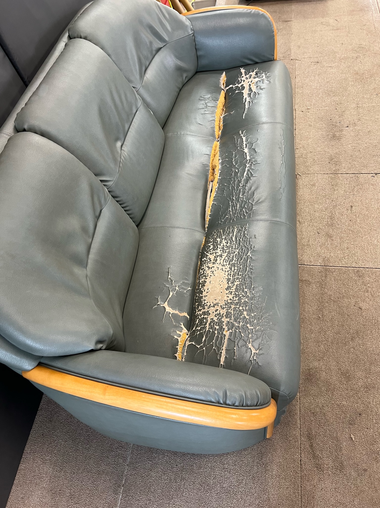 病院にある三人掛けのソファを張替えさせていただきました。本革のソファでしたが、擦れなどの箇所の量、これからのメンテナンス面を考え補修は、合皮素材へ張替えました。合皮は本革に比べ手入れがしやすいの...