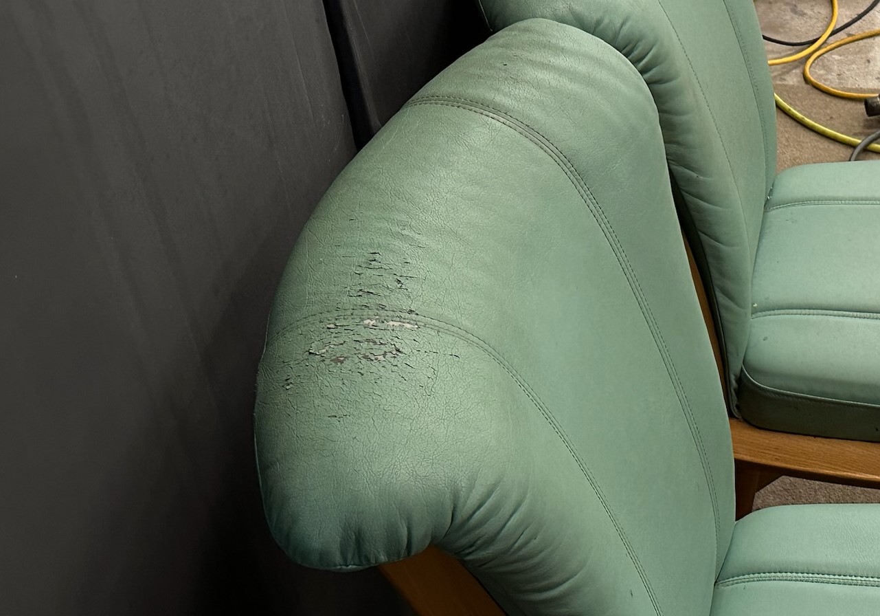 ダイニングチェアの背の張替えを行いました。革の劣化が見られ、同色の合皮で部分張替えを行いました。革の状態によりますが、そのまま使える生地はそのままに、縫製の切り替えのあるパーツで部分的な張替えも可能です。 ただ、同年での使用で生地自体も弱くなっていることもありますので、そのあたりも含めご検討いただけるようにご提案させていただきます。本革の製品については、細かい傷くらいであれば染め直しで対応しております☺