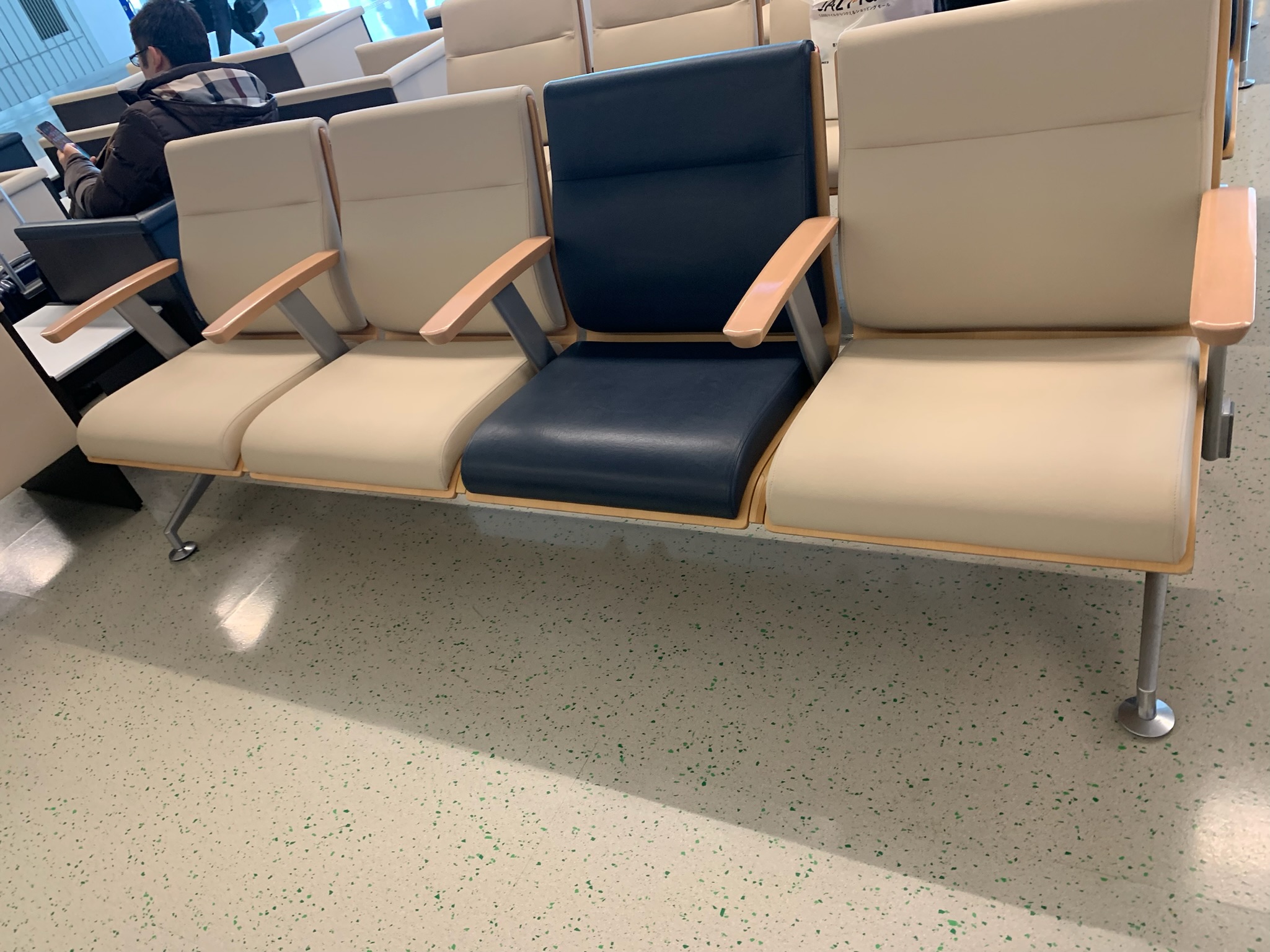 北九州空港様の待合ロビーの椅子の張替えを行いました。今回は汚れの目立つベージュのみです。 多くのお客様にご利用されている椅子は破れや汚れが目立ってまいります。 張り替え後にお手入れしやすいコ...