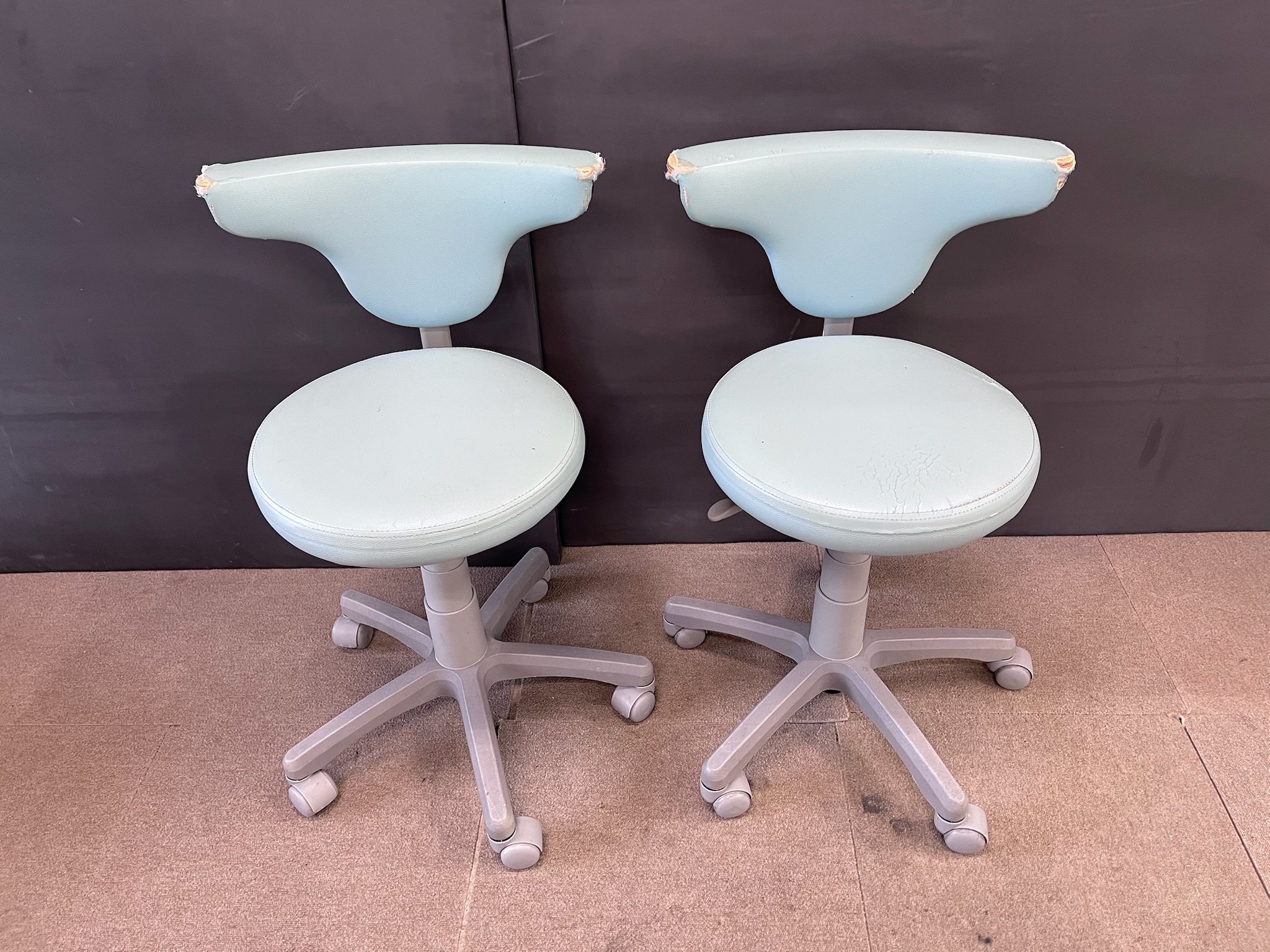 椅子のクリーニングに伺った病院の、待合にあった丸椅子の張替えを行いました。以前待合ベンチを張替えを行わせていただき、その時と同系色に合わせてカラーチェンジでの張替えになります。 待合の椅子など...
