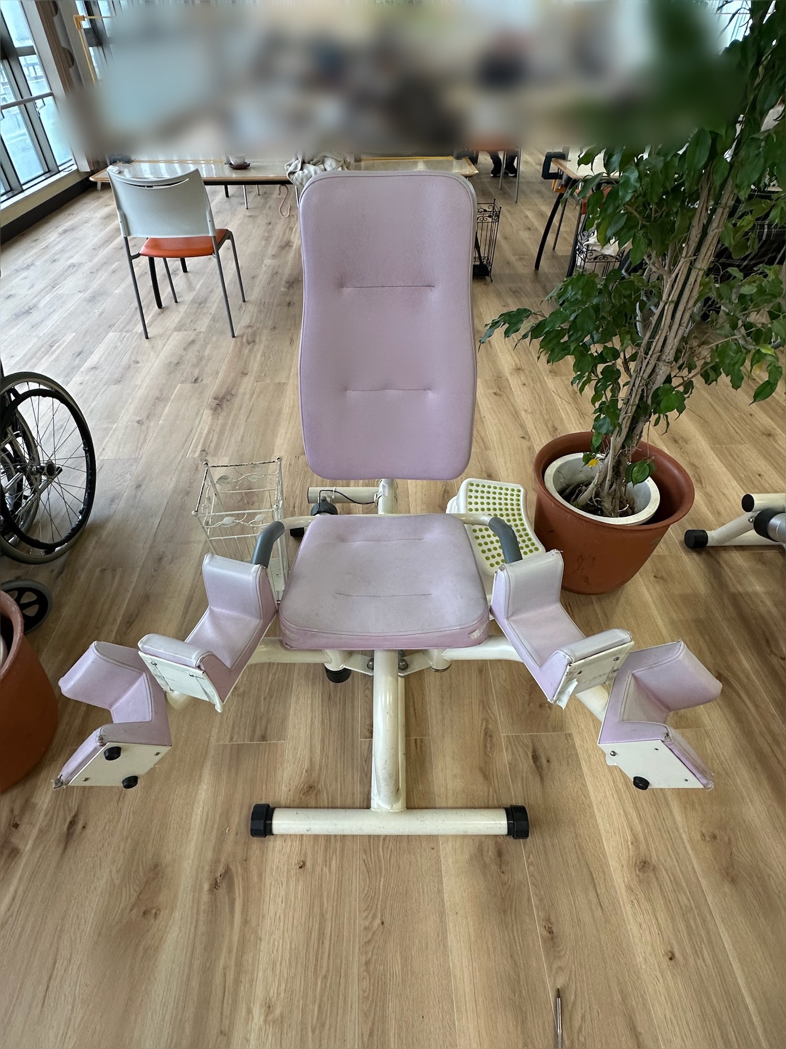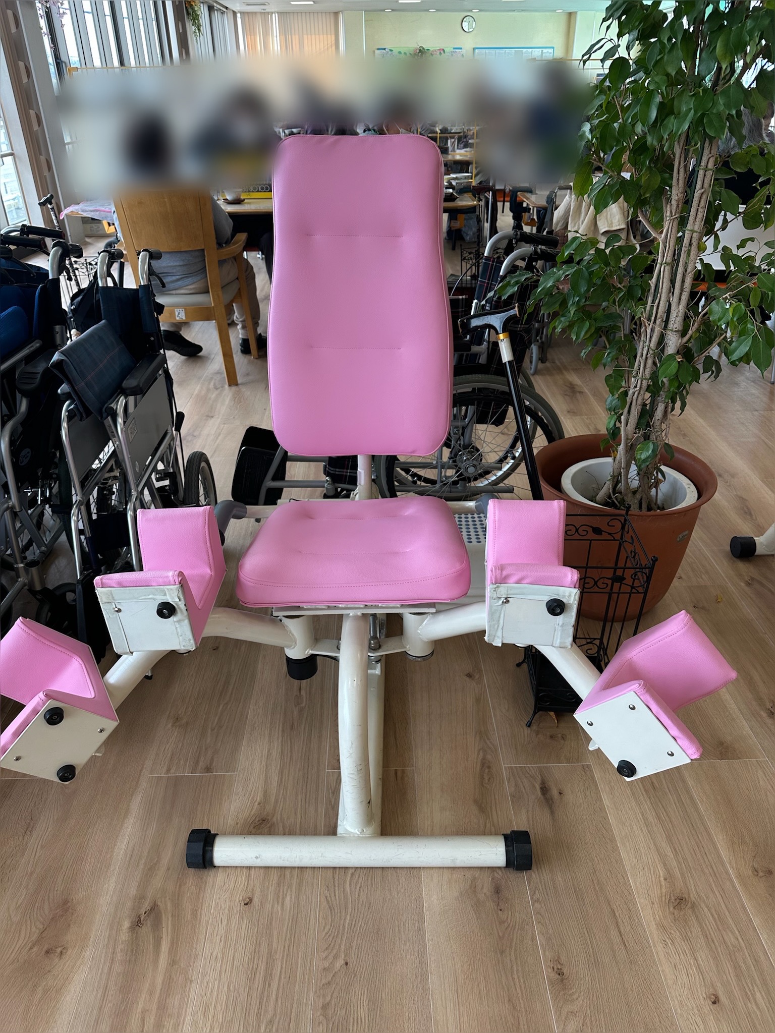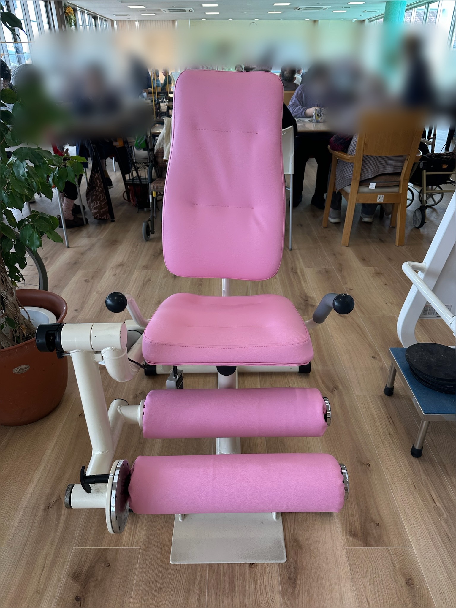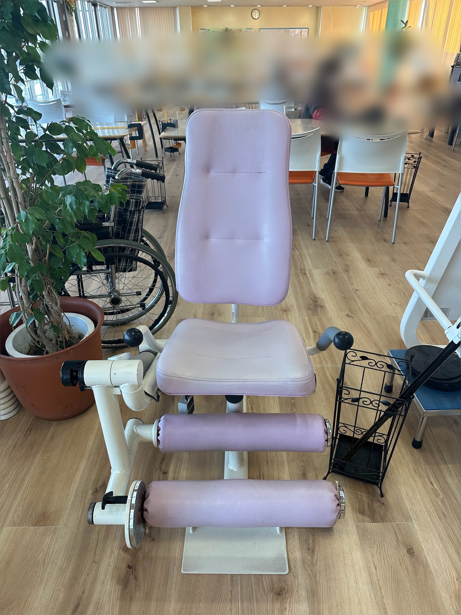 福祉施設のリハビリ用トレーニングマシーンの張替えを行いました。背と座と脚用のパーツです。本体から取り外しができましたので、施工は取り外して行っております。トレーニングで毎日利用されるマシーンは破...