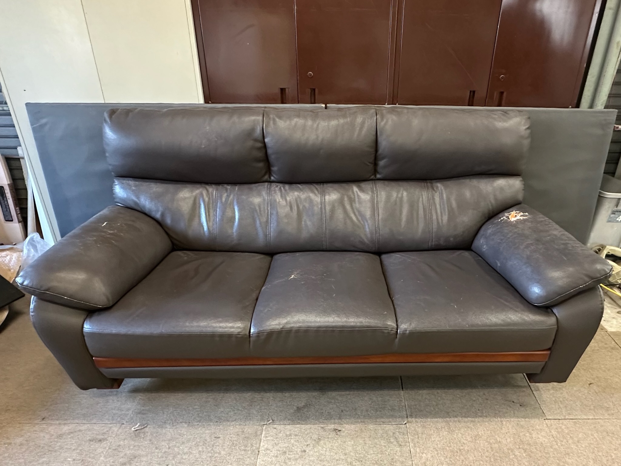 病院にある三人掛けのソファを張替えさせていただきました。本革のソファでしたが、擦れなどの箇所の量、これからのメンテナンス面を考え補修は、合皮素材へ張替えました。合皮は本革に比べ手入れがしやすいの...