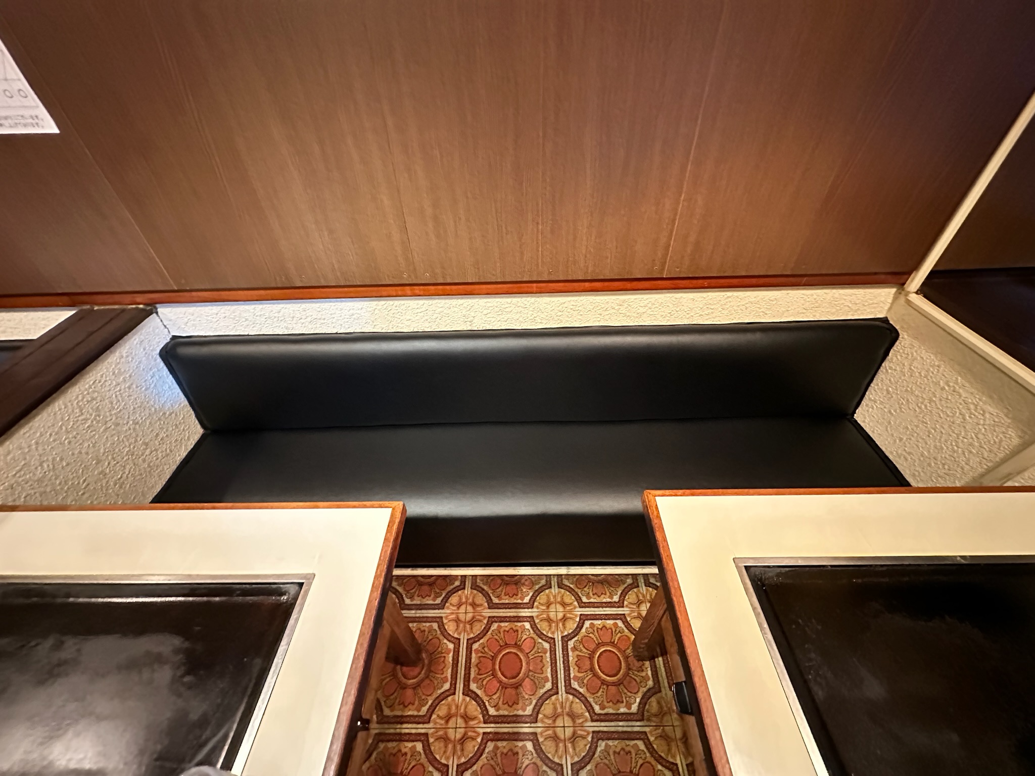 飲食店様より店内の椅子の張替えのご依頼をいただきました。写真は、店内の壁面の椅子ですが、破れもあったために張替えを行いました。 そのほかテーブル席の椅子も張替えを行わせていただきました。張替え...