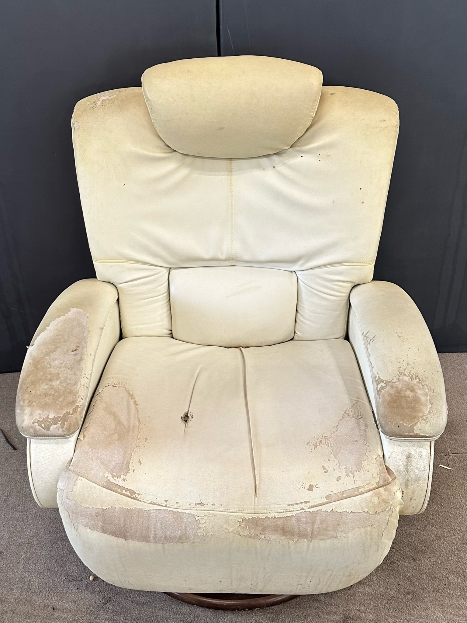 リクライニングチェアの革の張り替え依頼をいただきました。 座部分も背部分も張替えさせていただきました。 キズや取れない汚れが目立ってくると そろそろ処分かな・・・と思ってしまっています...
