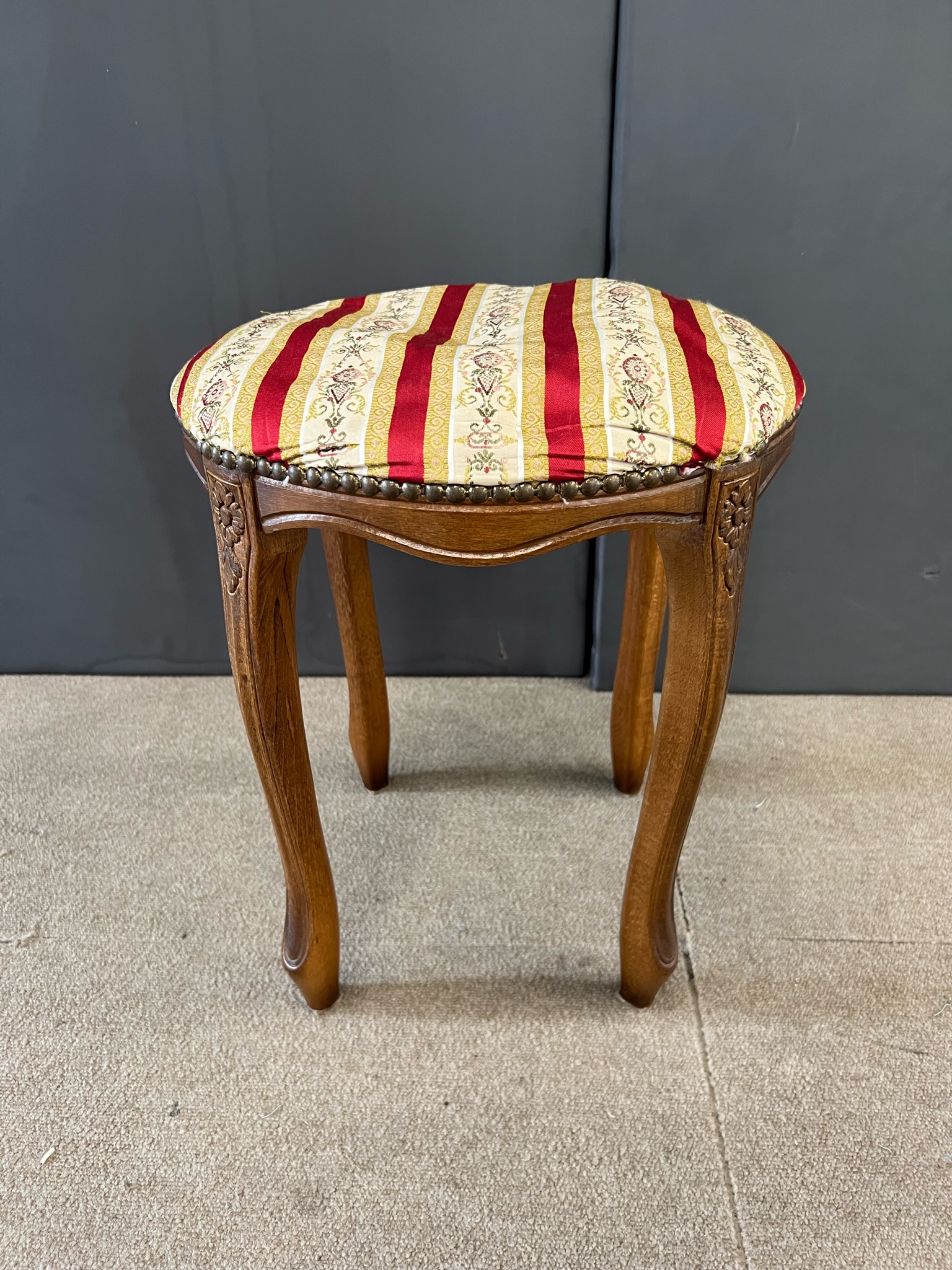 鏡台用の椅子の張替えをご依頼いただきました♪ 長年愛用してきた椅子は、クッション材が劣化してしまったり、 破れや汚れが気になりますね>< 買い替えるのも・・・と迷っているときは 張替...