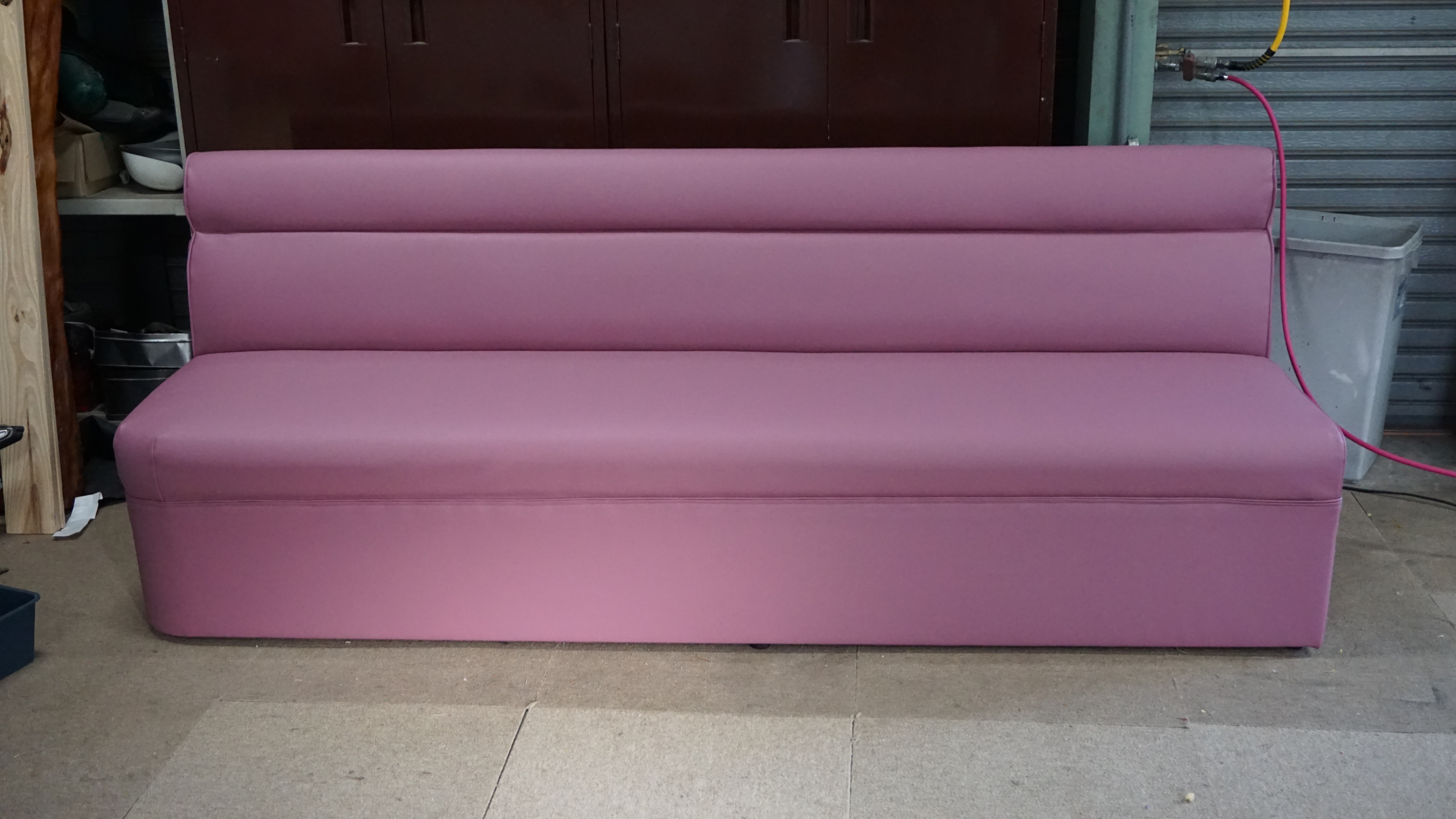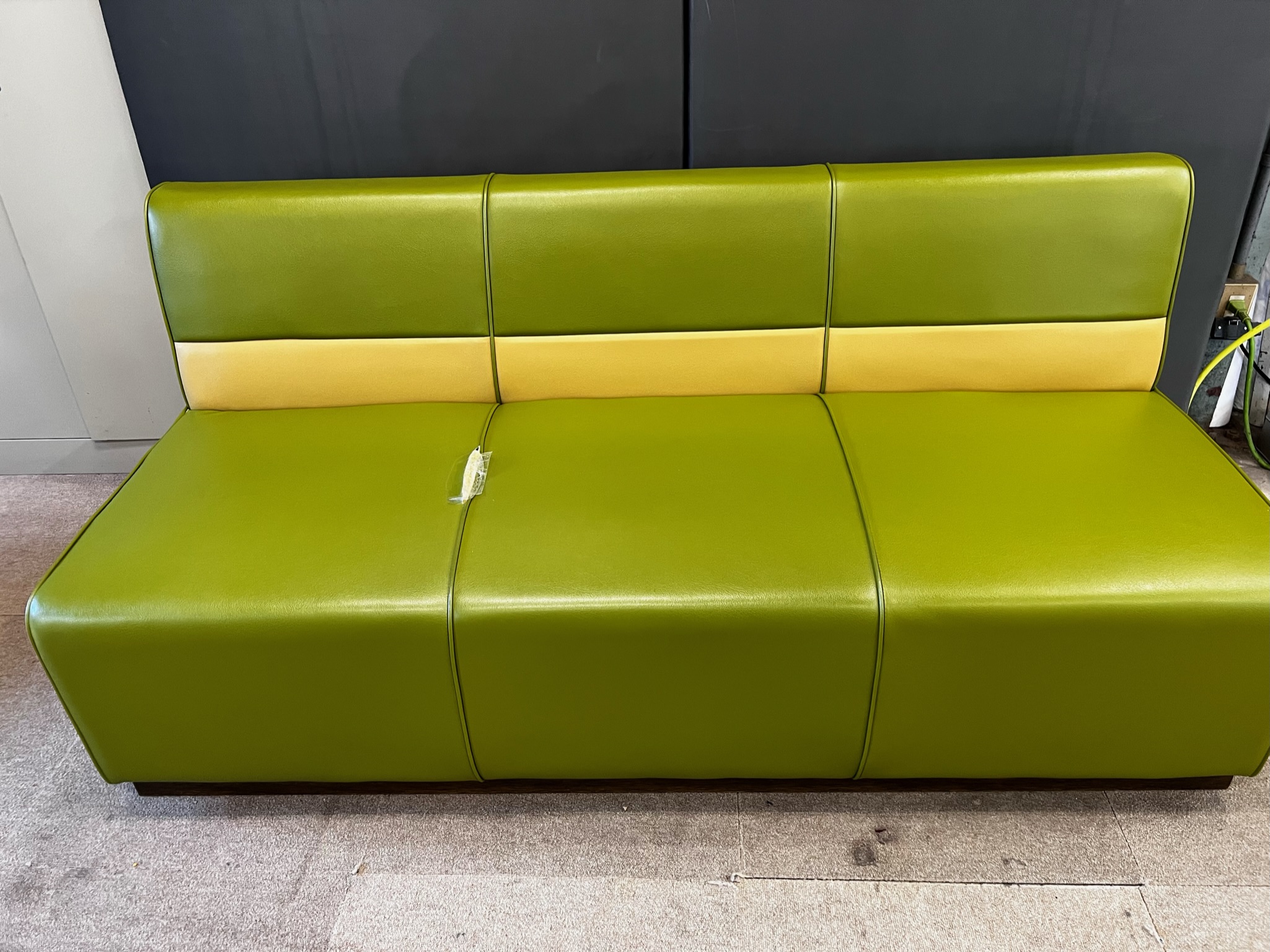 高齢者施設内のカラオケルームの椅子の張替えを行いました。飲食店やスナックなどに多いボックスタイプのソファです。ファブリック素材から合皮に変更。合皮は、汚れなどを水拭きできたりと、手入れがしやすい...