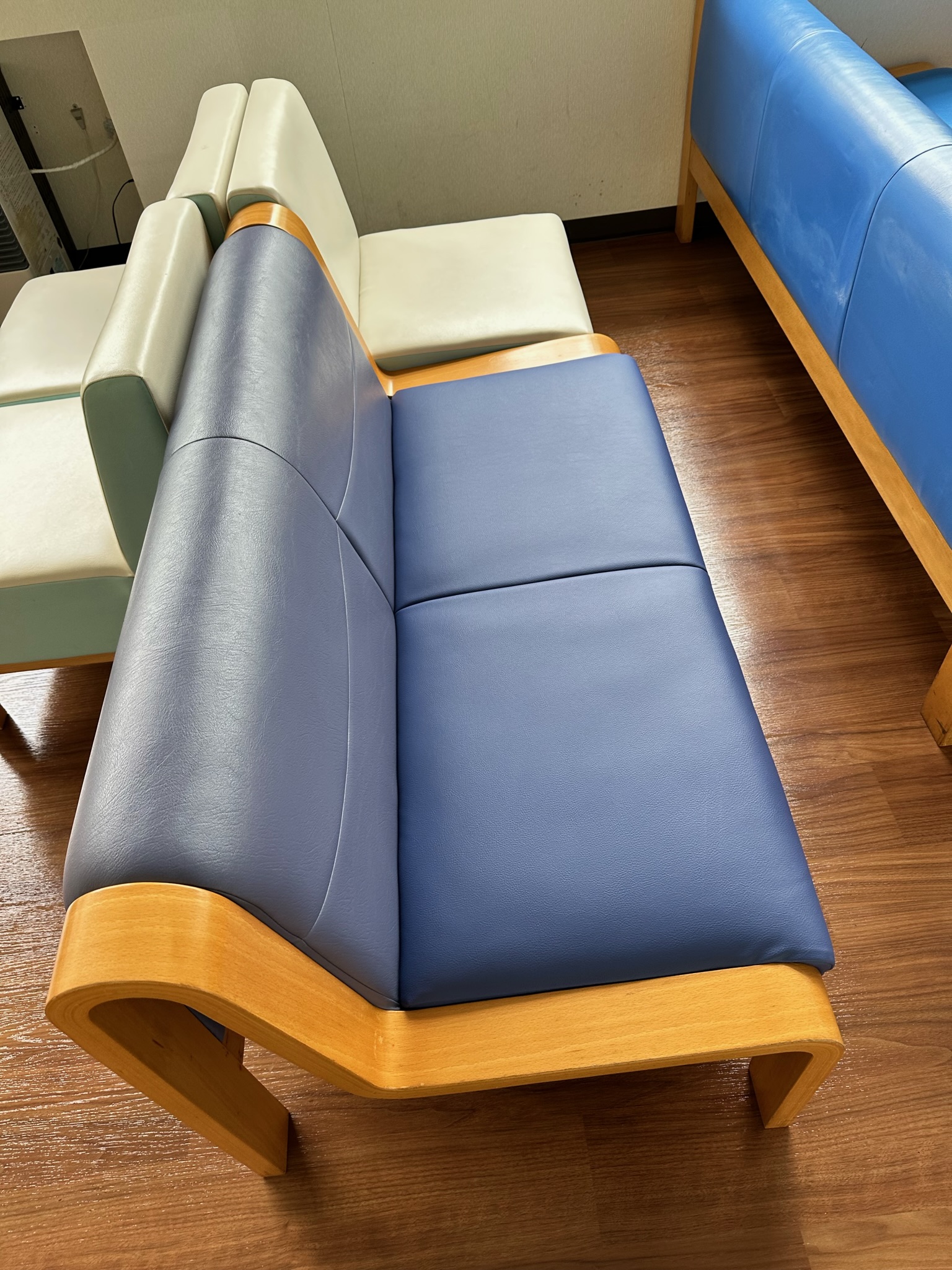 病院の待合椅子の張替えを行いました。劣化によるひび割れと生地の剥がれのため、張替えを行いました。内側ウレタンも交換し、生地も雰囲気を変えられたので病院内の印象も明るくなりました。生地の張替えの際...