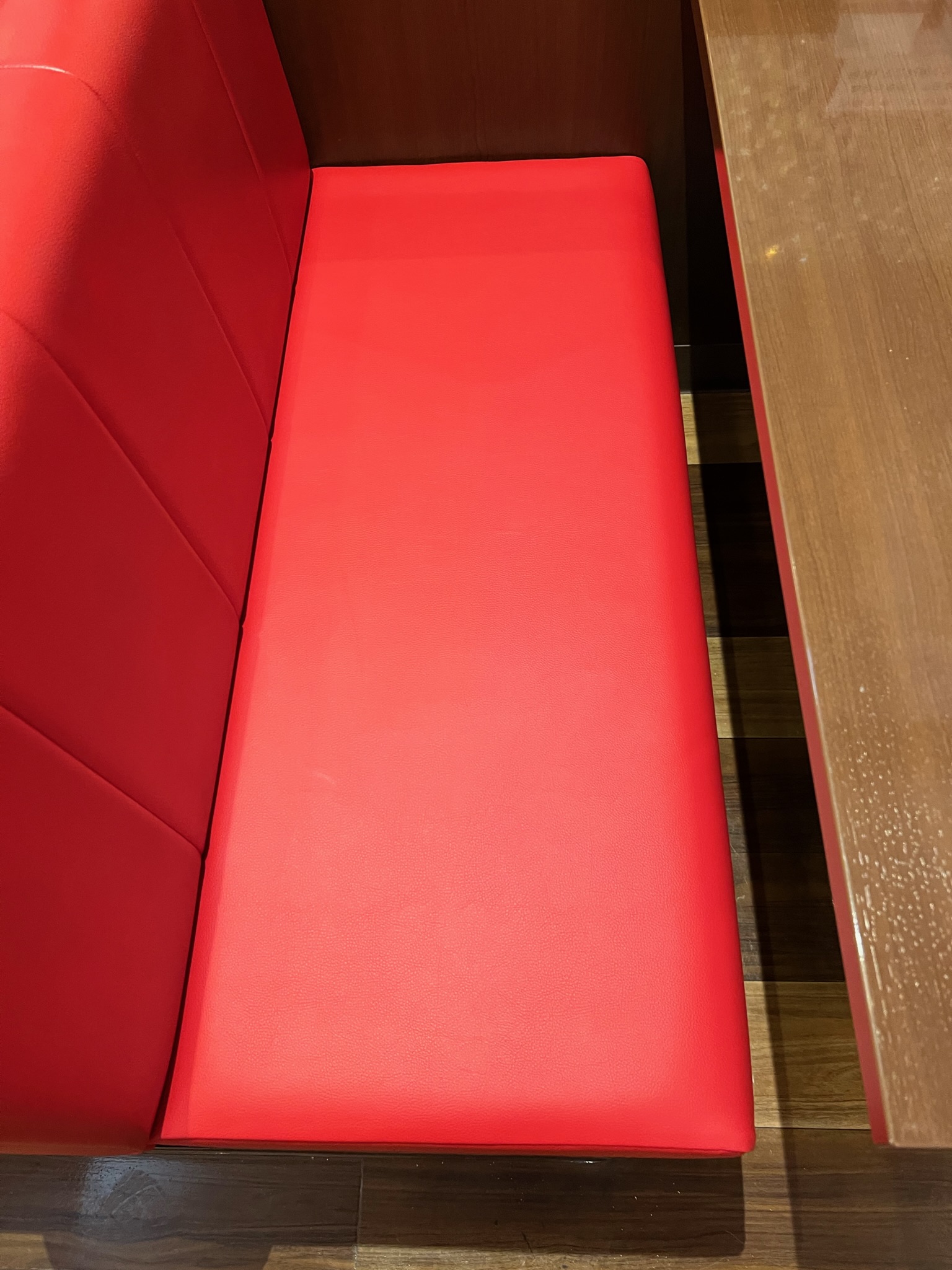 飲食店様より店内の椅子の張替えのご依頼をいただきました。写真は、店内の壁面の椅子ですが、破れもあったために張替えを行いました。 そのほかテーブル席の椅子も張替えを行わせていただきました。張替え...
