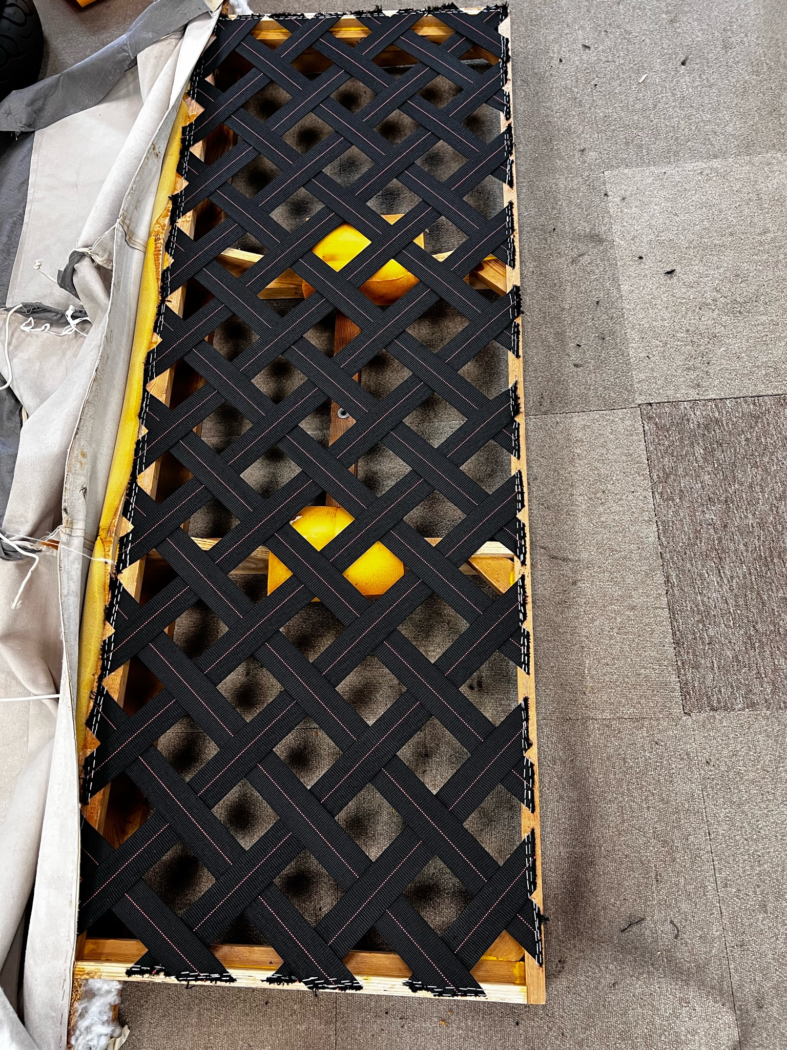 家具お取り扱いの店舗様よりご紹介いただき、 家具の修理のご依頼をいただきました。 革の張替えは行っていないのですが、座ると沈みすぎるとのことで解体し補修。 内側のゴムが伸びきっているのが原因でした。 ゴムの交換とともに伸びることでの沈みすぎをできるだけ抑えられるように、ゴムの張り方を変えました。 革はそのまま被せた状態ですが、ソファの張りが戻っているのがわかります♪