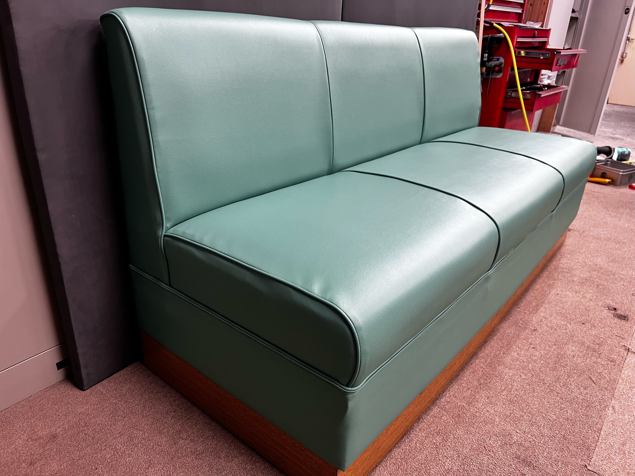 院内の待合室3人掛けソファの張替えを行いました。 すっきりとしたカラーにもなり、院内が明るくなりそうですね! 病院内の待合室や医療用ベッド等の革の張替えもご相談ください(^^)
